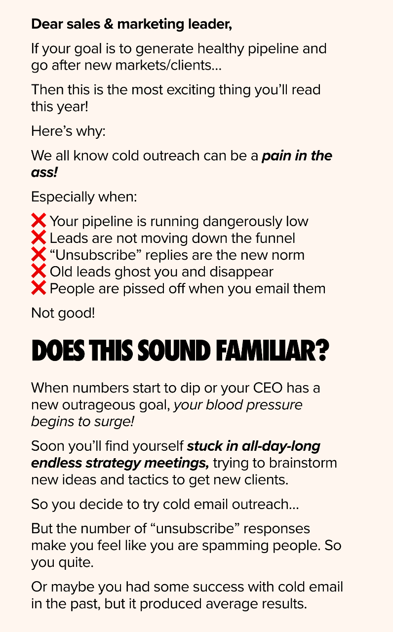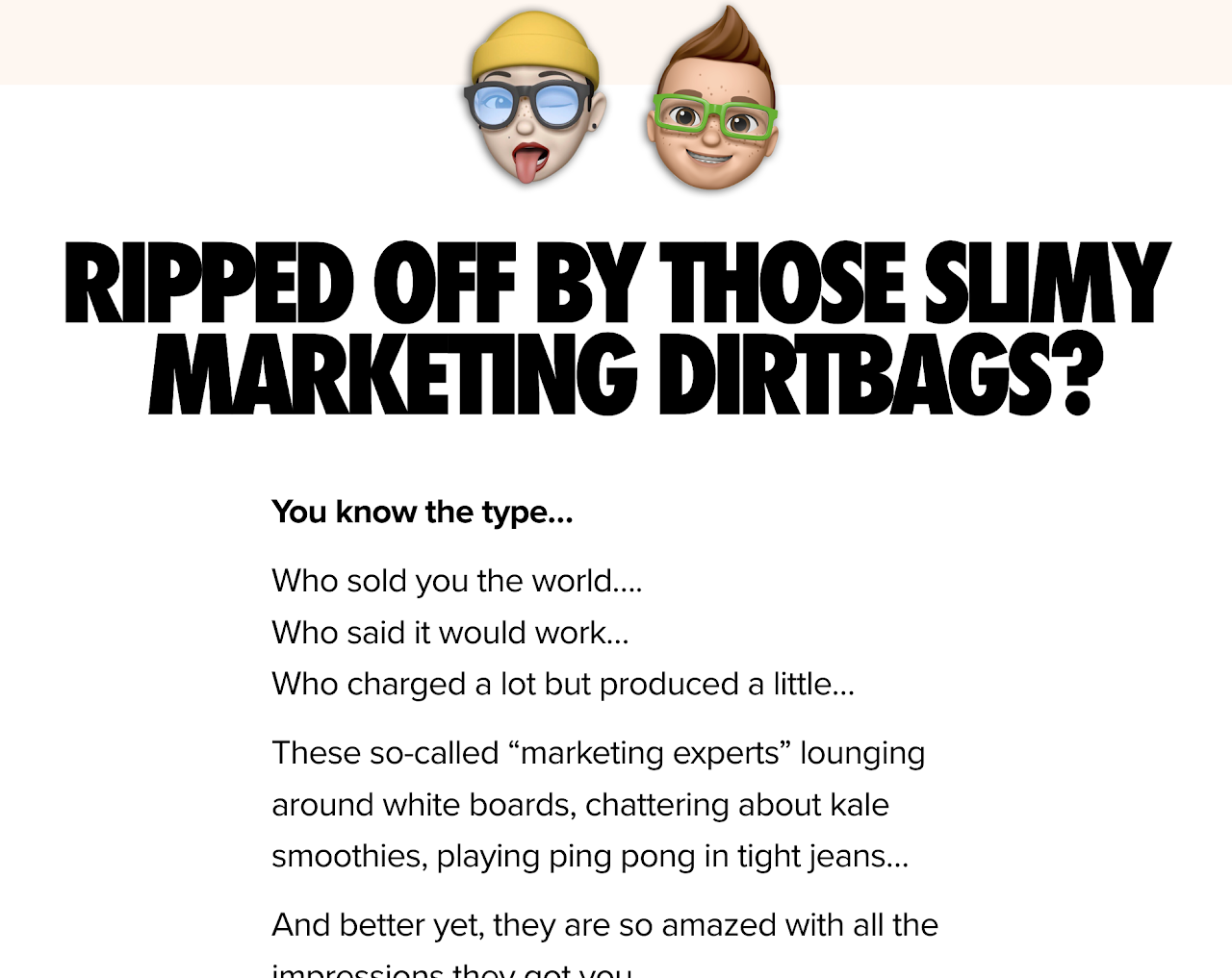 I love writing bold yet empathetic copy that resonates with audiences. Copy needs to stand out, be specific and polarizing. It needs texture and personality. If not, it will fall flat. I credit the majority of my success to following proven copywriting frameworks like the BFD formula, the Steve Job’s framework, and more. See below for just a fraction of my copywriting work.